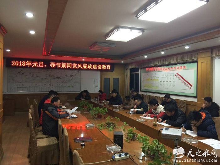 该项目不断加强理论学习,组织领导班子和职工学习了《廉政准则》中52个不准和8个禁止、习总书记谈“家风”、十九大报告中有关廉政建设相关论述以及有关“加强2018年元旦、春节期间的党风廉政建设工作”的文件。通过学习,提高了项目部班子成员和广大职工的思想意识,进一步落实中央八项规定,切实增强了大家的“四个意识”,使大党员干部严于侓已,做好遵守廉政自律各项规定的带头人,自觉抵制各种不良习气,以良好的形象取信于职工,以优良的党风带动、影响身边人,努力营造廉洁节俭过节的浓厚氛围。