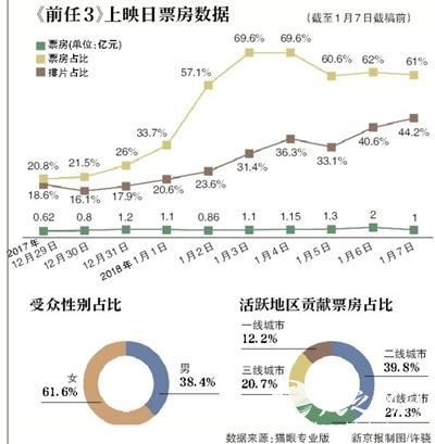 截至昨日截稿前,《前任3》上映10天票房已经超过12亿元。据统计,《前任3》票房贡献大多来自于女性观众,占61.6%,影片在二线城市也最受青睐。很多人都说看不懂这匹黑马的票房战绩,新京报独家专访《前任3》导演田羽生、业内人士及院线专家,解析该片票房火爆的原因以及回应“票房注水”等质疑。