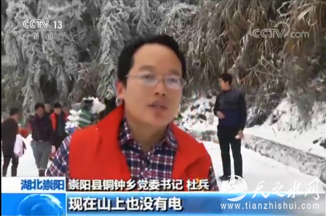 湖北省崇阳县铜钟乡党委书记杜兵:我们今天接到群众电话,山上的群众已经断粮了。现在主要带的是大米,还有方便面、饼干,解决群众吃饭的问题。现在山上也没有电,我们还带了蜡烛,包括我们还有棉大衣。
