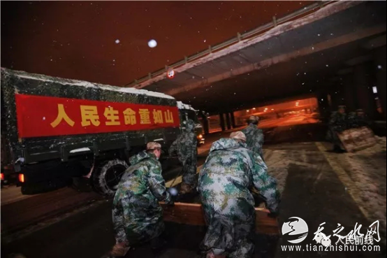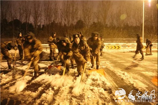 1月25日晚开始,东部战区和江苏省军区紧急派出官兵,奔赴驻地扫雪除冰、清理道路,保障人民出行安全。