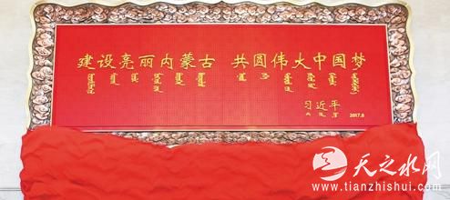 习近平为庆祝内蒙古自治区成立70周年题词的贺匾(图片来源:新华社)