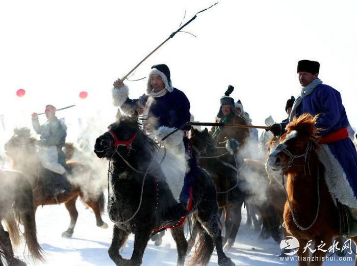 内蒙古陈巴尔虎旗气势恢宏的马队表演。(图片来源:新华社)