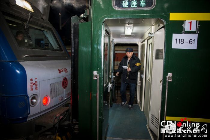1月31日傍晚,此次列车的值乘人员对列车各部位进行检查确保旅途安全。