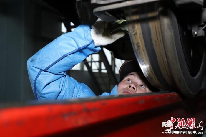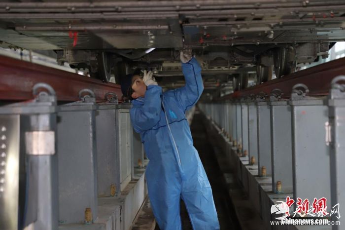 “90”后的罗晓强是贵阳北动车运用所动车检查库二级检修班组的“机械师”。1994年6月出生的他参加工作已经两年,两年来,他始终为了旅客的生命财产安全坚守在动车维修一线。2018年春运启幕,动车入库数量增多,他的工作量变大,但是他并没有抱怨。他说,我们的工作就是为了动车在线路上能够安全运行,避免事故发生,让旅客的出行得到保证。图为2月2日,他和同事正在检查设备有无故障。中新社记者瞿宏伦摄