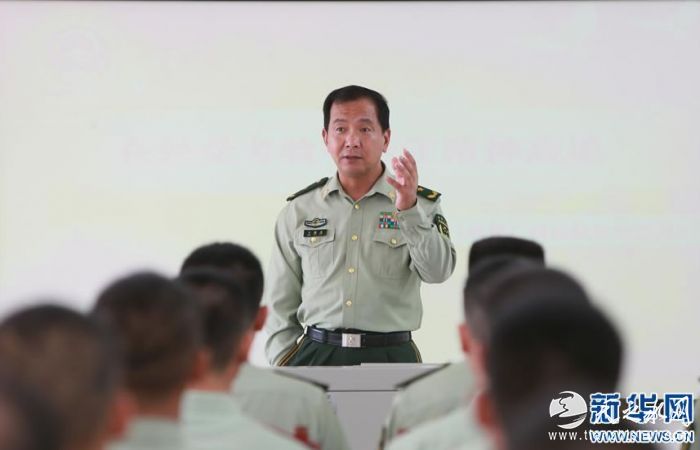 在广西南宁市某部营区,丁晓兵给基层官兵上党课(2016年6月1日摄)。