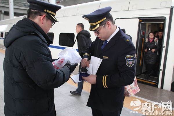 春运首日,斯钦夫值乘D6769次集宁南至包头旅客列车。这是今年八月草原高铁开行以来的第一个春运,客流较平稳。从列车出发开始,斯钦夫开始播放禁烟广播、查验旅客车票、检查安全设备等一系列工作。斯钦夫说,到高铁上工作以来,程序性的工作多了,不像原来在普通列车上与旅客接触的工作量大。