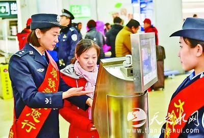 二月一日,太原火车站派出所民警使用人脸识别系统对进站旅客进行“刷脸”识别。新华社发