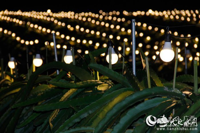 原标题:广西龙州:千亩火龙果灯海璀璨夺目