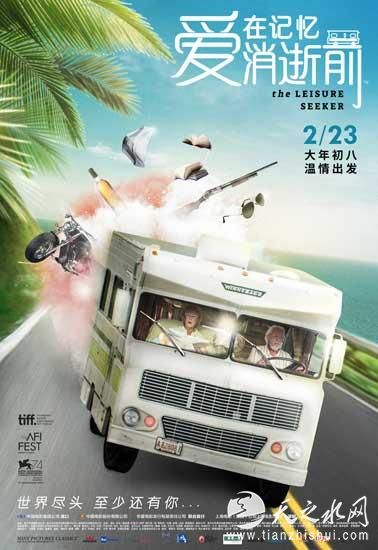 在终极海报中,老夫妻开着房车一往无前,而一双儿女的劝阻、邻居薇薇安的干扰以及一系列的生活琐事被他们远远甩在身后。对他们来说,眼前的一切虽然让人留恋,可终究是人生中的羁绊,只有勇敢抛弃才能到达诗和远方。