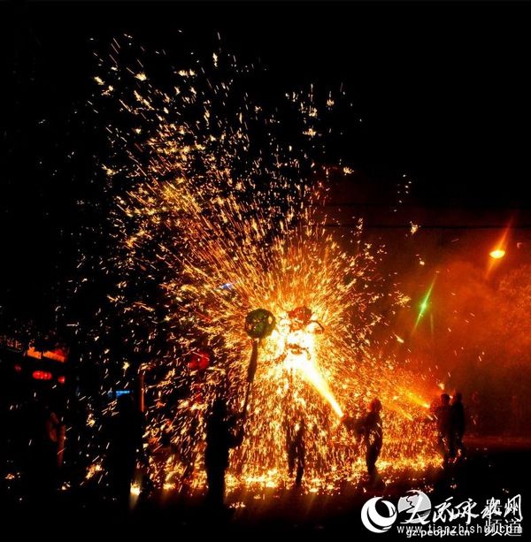 人民网雷山2月11日电(孙远桃)日观黔贵山水,夜赏苗侗风情。2月9日,记者从雷山县2018首届西江苗界“舞龙嘘花”狂欢年活动组委会了解到,被称为“勇敢者的狂欢”的苗族“舞龙嘘花”民俗活动,将在春节期间(2月20日—3月3日)在雷山县西江苗界枫香广场举办。