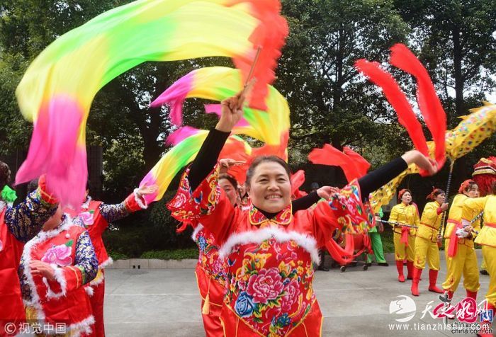 2018年2月16日,四川绵阳,在北川羌族自治县北川新县城内,当地群众身着节日盛装舞起上百条象征吉祥幸福的长龙。