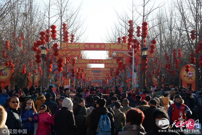 2018年2月16日,北京,第三十三届地坛春节文化庙会开门迎客,第三十三届地坛春节文化庙会的主题是“唱响地坛迎春曲携手迈进新时代”。