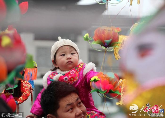 2018年2月16日,市民在南京夫子庙东牌楼花灯市场选购花灯。当日是大年初一,南京夫子庙东牌楼花灯市场开市迎客,五彩缤纷的生肖灯、荷花灯、菠萝灯、兔子灯竞相争艳,吸引众多市民和游客前来选购。