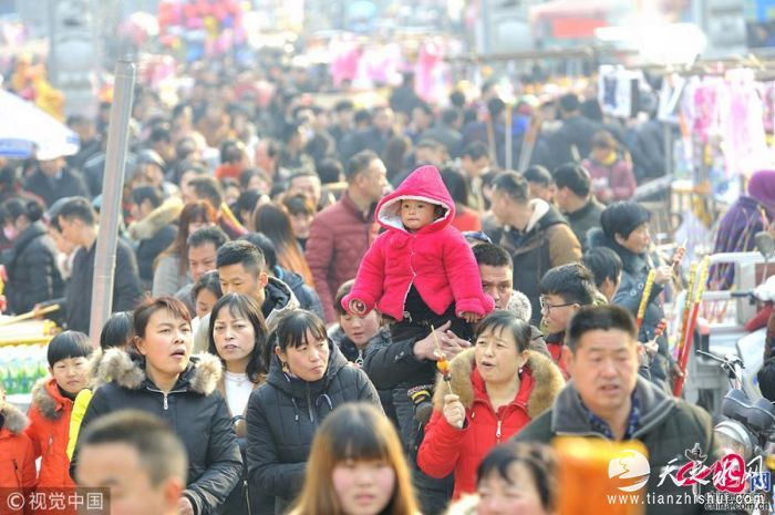 2018年2月16日,河南鹤壁,当日是大年初一,浚县正月古庙会上人潮涌动,浚县古城游人如织。