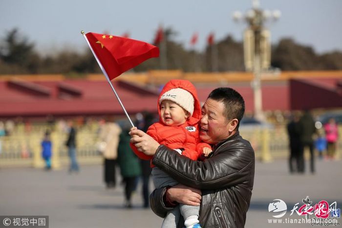2018年2月15日,北京天安门广场,游客欢乐祥和过大年。