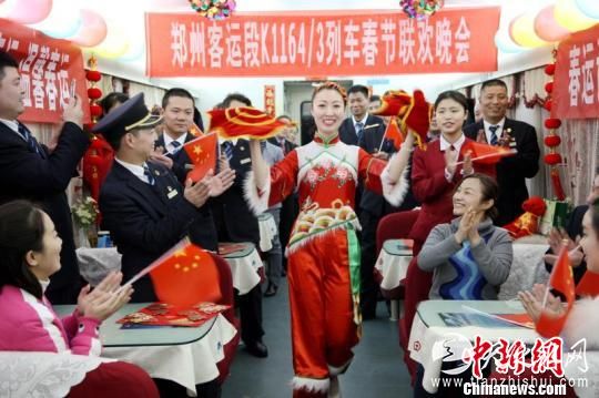 2月15日晚,除夕之夜。在郑州客运段北京三队担当的长治北开往北京西的K1164次列车上,春意盎然。列车餐车张灯结彩,整列车厢贴满福字和对联,车上处处洋溢着浓浓年味。一台由该段文艺演出小分队和列车乘务员自编自导的“列车春晚”正在紧张的筹备中。