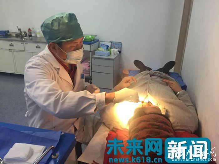 遛狗时不慎被流浪狗咬伤嘴部的病人,左永波在为其治疗。(受访者供图)