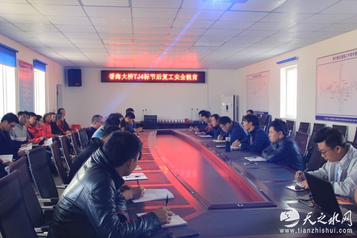 (记者 常魁星 通讯员 甘洪瑞)珠海市香海大桥TJ4标二工区于2月25日对项目管理人员、一线作业人员进行了春节后复工安全教育。