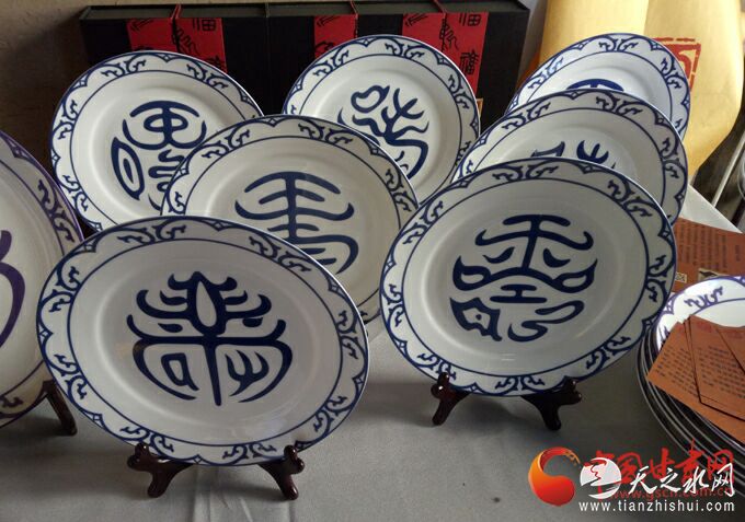 据天水66文创园负责人刘晓武介绍,龟形蛇纹八寿碟是天水66文创园创意、设计、出品的八寿系列文创产品之一,来源于天水百年古建贾家公馆的龟形蛇纹八寿木刻图,蛇龟乃长寿之物,化二者之形文字,可谓寿之又寿再寿也。其意为生命延续,健康永驻,追求幸福美好生活。原料为景德镇高档瓷,采用釉下彩烧制工艺,既可以作为艺术品收藏,也具有极高的实用价值。
