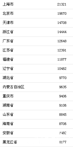 国家统计局公布的31省份居民人均消费支出数据显示,上海、北京、天津上半年居民人均消费支出排名前三。