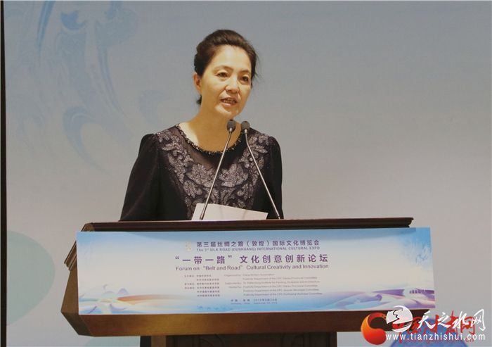 中国甘肃网9月28讯(本网记者 宋芳科 文/图) 9月28日,第三届丝绸之路(敦煌)国际博览会之“一带一路”文化创意创新论坛在敦煌国际会展中心举行。甘肃省委常委、宣传部部长陈青致辞,中国作家协会副主席白庚胜、中国文物保护基金会理事长励小捷、中国艺术研究院原院长、中国非物质文化遗产保护中心原主任连辑出席并发表演讲。