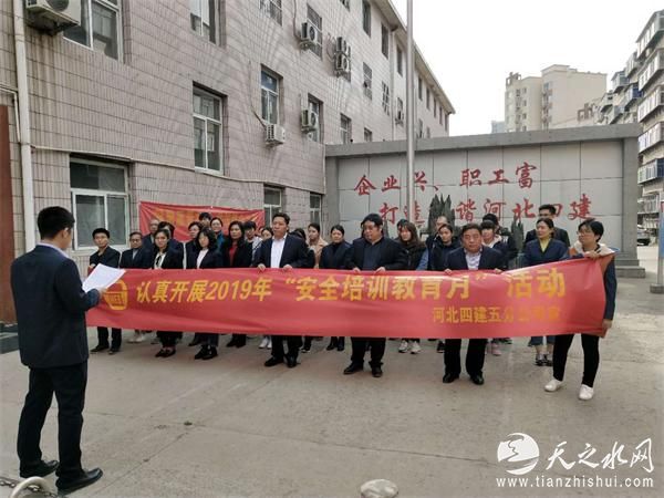 4月份为河北建工省四建公司“安全培训教育月”,五分公司积极响应和落实,4月1日,机关和各在建项目部分别组织开展了“安全培训教育月”活动启动仪式,全体管理人员及作业队人员在施工现场宣传条幅上进行了签名。