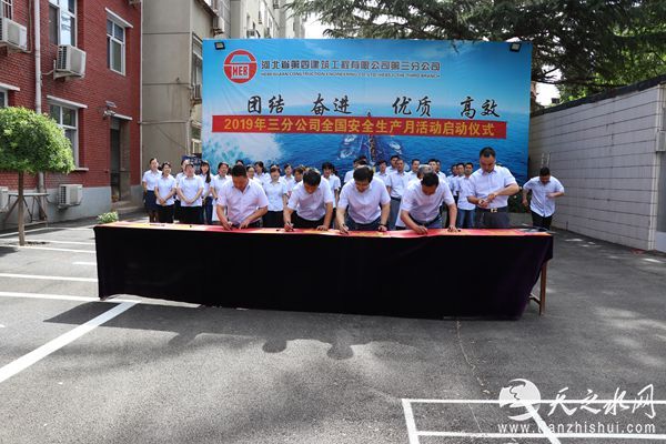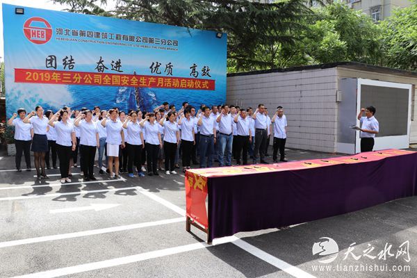 5月27日上午8点半,河北建工集团省四建三分公司2019年全国“安全生产月”启动仪式在机关院内举行。分公司班子成员及机关各科室干部职工进行了安全宣誓和签名。本次活动主题为“防风险、除隐患、遏事故”。