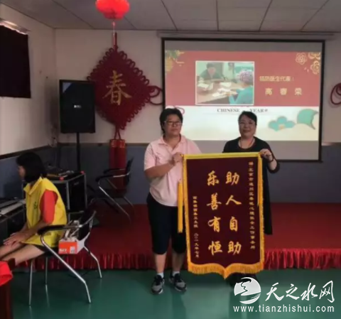 联欢会上,参加者真诚分享着自己的感受。通州区精防院精防科李科长谈到她在工作中看到患者家属无私的付出,令她动容。 郎府卫生院的服务对象李艳旗说起她在活动中收获了与病友联结产生的友谊,与社工、精防医生的关爱和理解。 西集镇精防医生高春荣在对三个月活动的回顾与总结时,真诚地为承办活动的春晓心理社会工作事务所赠送了一面写有“助人自助,乐善有恒”的锦旗,充分肯定了社工们在康复活动中的辛勤付出。