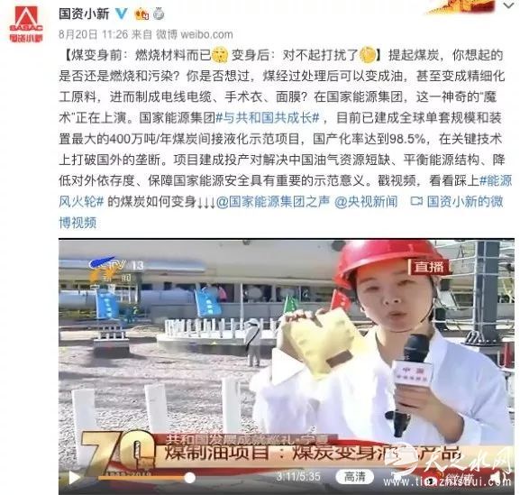 8月20日,小新在微博上发了这样一条微博,介绍煤的“变身”:除了燃烧以外,煤还能制成油,以及一些精细化工原料,这其中就包括面膜的原材料。
