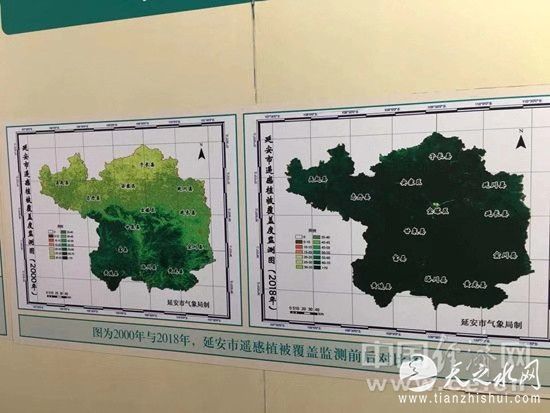 2000年与2018年,延安市遥感植被覆盖监测前后对比图。经济日报-中国经济网记者 武晓娟/摄