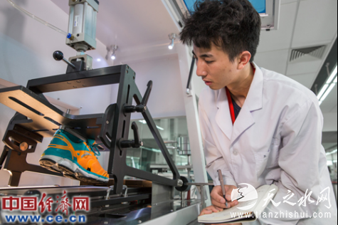研发人员在实验室检测鞋品性能。(安踏集团供图)