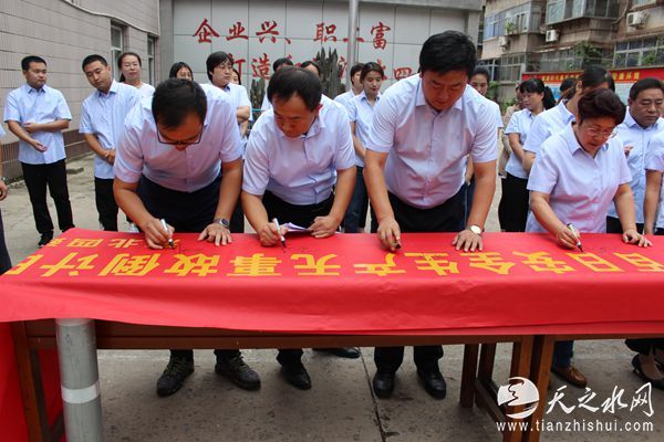随后,大家在现场悬挂的“百日安全生产无事故倒计时”、“防风险、除隐患、保平安、迎大庆 ”条幅上郑重地签名承诺。