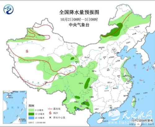 全国降水量预报图(10月2日08时-3日08时)