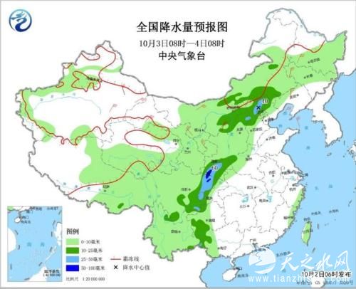 全国降水量预报图(10月3日08时-4日08时)