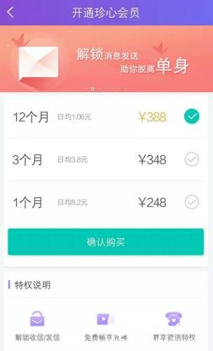 许明解释道,在他使用大部分婚恋类APP时,都明显感受到免费用户受限颇多。“非会员在APP内有很多功能用不了,比如搜索无法使用、私信无法打开等。只有充值VIP会员,才能让联系、搜索等功能不受限制。”许明介绍,较低价位的VIP会员年费大多为100-400元左右,而更高档的会员则可享有专属客服等服务,部分APP的会员年费高达上千元。因免费与付费用户使用体验差距较大,许多急于解决“个人问题”的用户选择了升级会员。