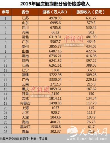 而从地方层面来看,目前至少有25个省份公布了国庆假期旅游经济成绩单。从旅游收入数据来看,江苏省以631.27亿元雄踞首位。江苏也是目前国庆假期旅游收入唯一的突破600亿大关的地区。