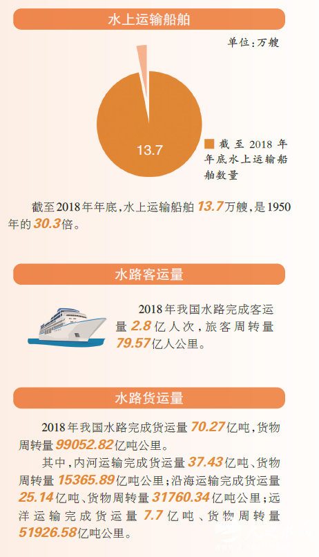 经过砥砺奋进和开拓创新,我国水运事业旧貌焕新颜,供给不足、制约国民经济发展的历史早已一去不复返,目前正昂首阔步迈上由航运大国向航运强国转变的新的伟大征程。
