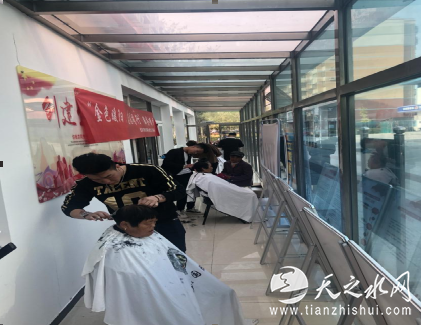 虽然天气比较冷,但居民在社区服务站早早就排起了长队。春晓社工郝月霞、姜可齐和志愿者也早早地来到了活动现场。不一会,社区服务站内便人头攒动、热闹非凡、免费理发、按摩、测量血压、血糖等一系列便民服务活动相继展开。