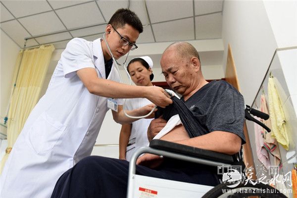 2019年9月7日,南和县中医院医养中心医护人员为老人检查身体。(新华社记者 朱旭东 摄)