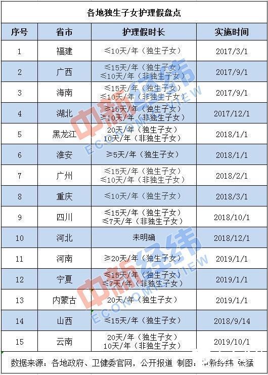 据中新经纬客户端不完全统计,截至目前,已至少有云南、山西、内蒙古、宁夏、河南、河北、四川、重庆、黑龙江、湖北、海南、广西、福建等13省份,以及淮安、广州等2市出台了与“独生子女护理假”相关的具体规定。