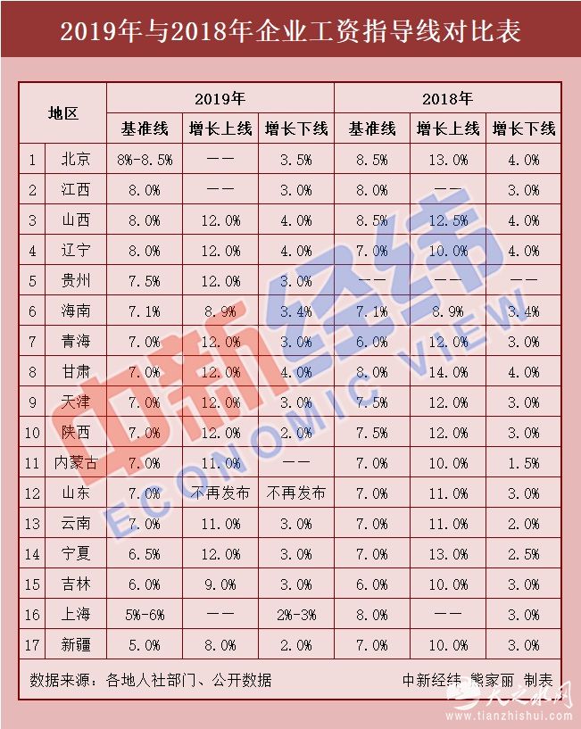 据中新经纬客户端不完全统计,截至11月24日,至少已有北京、江西、山西等17个省份公布了2019年企业工资指导线,此外,广西已在9月公布2019年企业工资指导线征求意见稿,有望跟进调整。