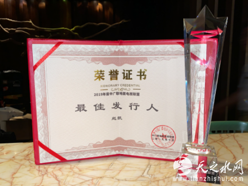 时代光影副总经理赵凯荣获2019年度中广联地面电视联盟“最佳发行人奖”。