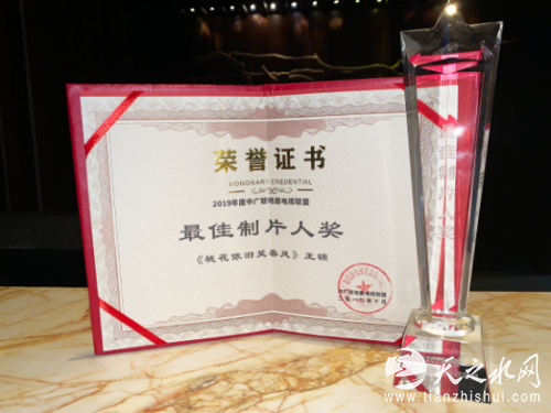 时代光影董事长王锦凭借《桃花依旧笑春风》荣获2019年度中广联地面电视联盟“最佳制片人奖”;