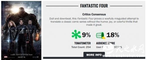 《神奇四侠2015》烂番茄新鲜度仅9%,爆米花指数18%