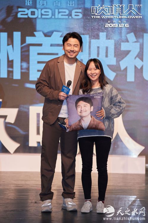 值得一提的是,广州首映礼当天,正值痛仰乐队为电影《吹哨人》所作的推广曲《弯道人生》新鲜上线,现场特别放映MV让在座的观众先睹为快。雷佳音在放映结束后表示自己很欣赏痛仰乐队,并透露自己以前有一颗“摇滚之心”,甚至还为此留过标志性的披肩发。此外,当天电影《吹哨人》也正式开启了预售,专程来到广州的雷佳音现场跟同学们学习用“广东话”号召大家扫码购票,一句的“达嘎吼”轻松将首映礼的气氛推至高潮。