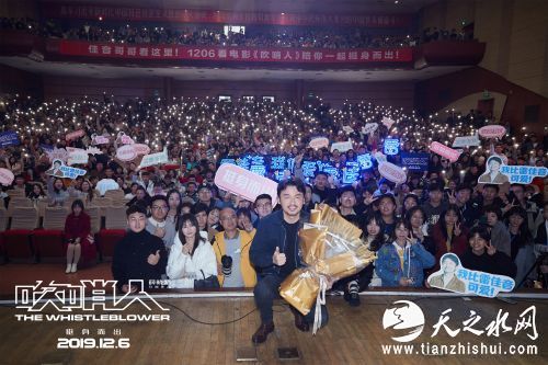 作为华语首部“吹哨人”题材影片,观影结束后众多观众就针对全新题材向主创提问。有同学问道:“国家出台这个政策后,《吹哨人》就与观众见面了。您对于这方面有什么感受?”面对观众提问,雷佳音言辞诚恳地回答说:“我们影片的开拍与国家政策落实确实只是碰巧,但作为电影人能够承担相应的社会责任,我们很骄傲。如果能拍一个有意义的电影,得到大家呼应,让更多人关注‘吹哨人’,这是一件好事!”