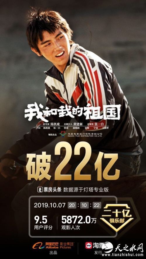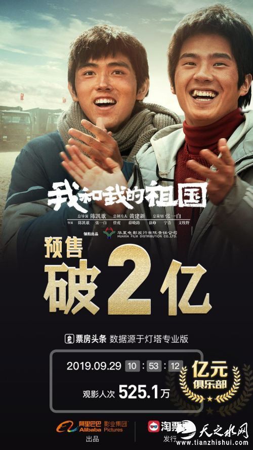 《我和我的祖国》属于未映先火的类型,电影未上映前预售票房已经突破2亿;上映后其表现也非常亮眼,10月1日当天《我和我的祖国》票房突破6亿,10月2日电影票房已经超过10亿,十一长假期间,《我和我的祖国》累计收获22亿票房。