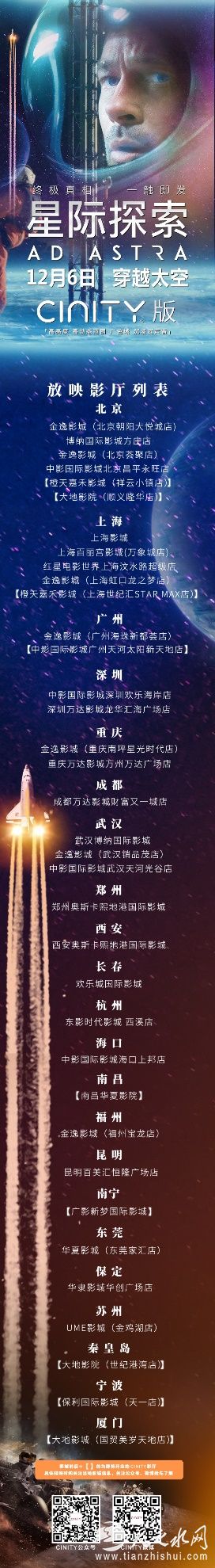 12月6日,由“不老男神”布拉德·皮特制片并主演的太空科幻冒险大片《星际探索》将在内地上映,届时观众可前往CINITY影厅感受高动态范围带来的更为细腻的画面和更加丰富的细节,真实体验这部颇具高级感的好莱坞巨制大片。