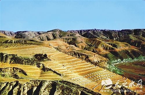 图为1998年退耕还林前,陕西省延安市延长县黄土遍地、植被凋零的地貌。 (资料图片)