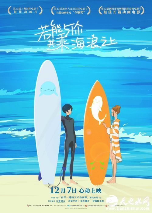 奇幻爱情动画电影《若能与你共乘海浪之上》将于12月7日心动上映。作为日本动画“鬼才”导演汤浅政明在国内上映的第一部作品,备受影迷期待。此前,本片曾荣获今年第22届上海国际电影节最佳动画片,第23届加拿大奇幻国际电影的动画长篇单元“今敏奖”,以及第52届西班牙锡切斯国际奇幻电影节最佳长篇动画电影奖等多项国际奖项,未经上映便备受好评。今日(12月2日),影片发布“乘浪之约”版终极海报和预告,感人爱情和暖暖治愈情绪给寒冷冬天带来一股暖流。